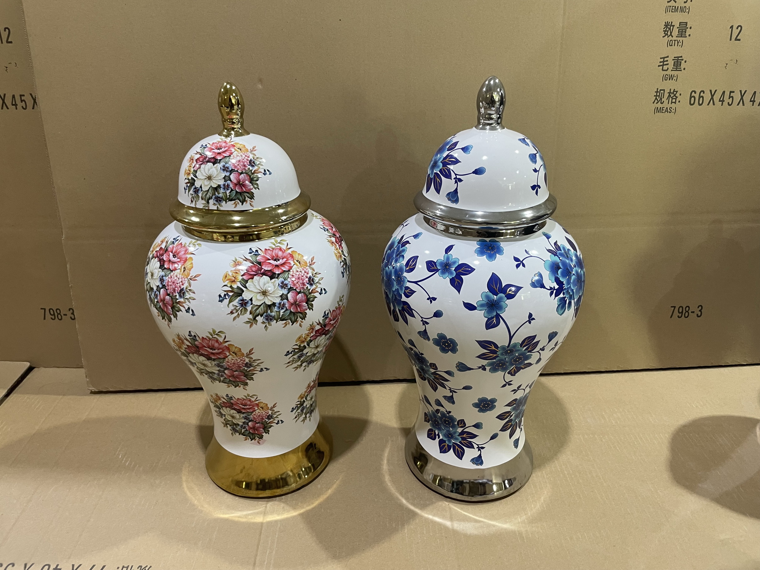 FLORERO C/TAPA DE PORCELANA C/DISEÑO 22X22X45 A/R
